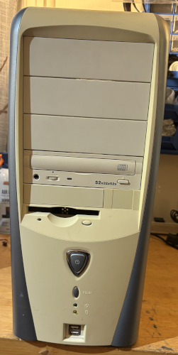 The case is in like new condition. There is a rear 80mm case can and a CD RW 52x32x52x optical drive installed. There is a slow on the front for a 3.5" floppy drive. It has 2 x front USB ports. See below for details.