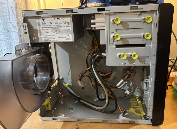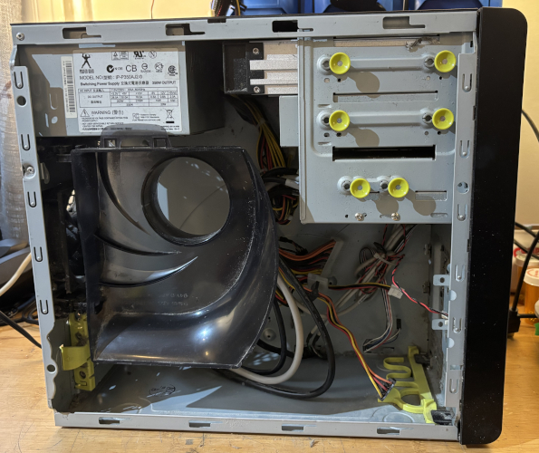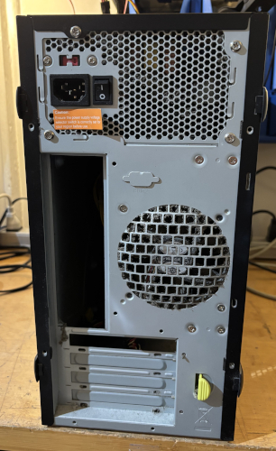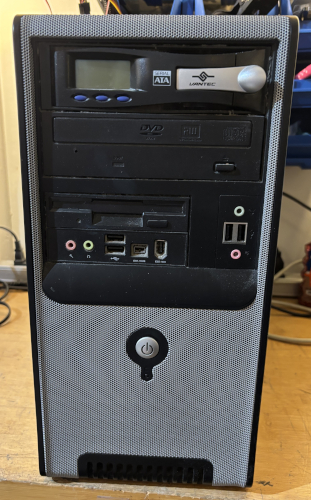 The case is in great condition. There is a DVD RW optical drive, floop drive and a Power Man IP-P350AJ2-0 350W power supply all installed. It has 4 x front USB ports, Firewire 400, Mini Firewire (iLink) and front headset and microphone ports. There is a 120mm rear case fan installed. See below for details.