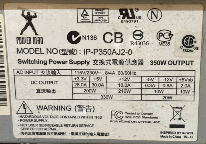 - Power Man IP-P350AJ2-0 350W power supply