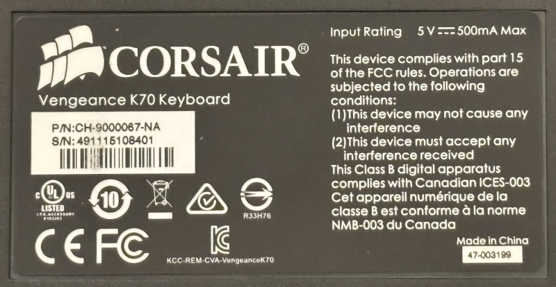 Corsair Vengeance K70 Fully Mechanical Gaming Keyboard