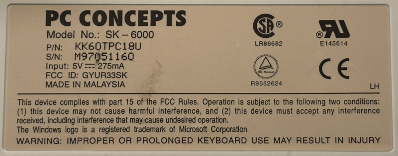 PC Concepts SK-6000 Ergonomic Wave Keyboard with PS/2 & 9-Pin Serial