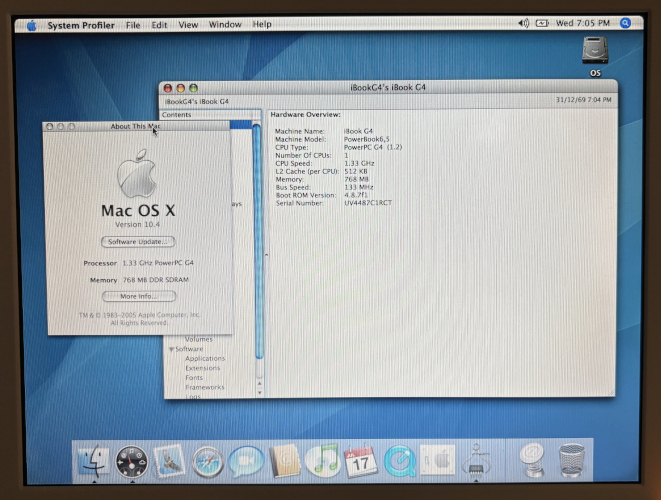 The laptop is in great condition. The laptop has been tested and confirmed in full working condition. It comes with the Apple power supply. Unsure if the battery holds a charge.There is a clean install of Mac OS 10.4, Tiger. Please see below for the information of the laptop.