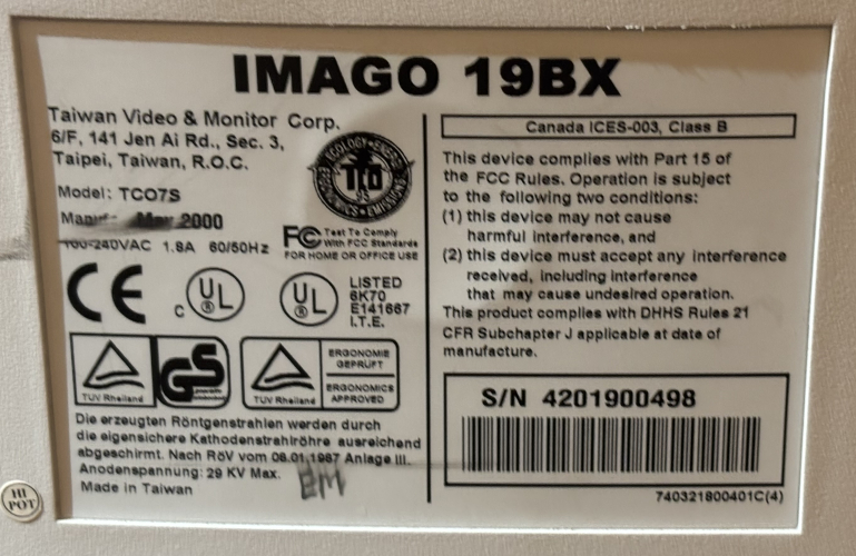 IMAGO 19BX 17" CRT Monitor