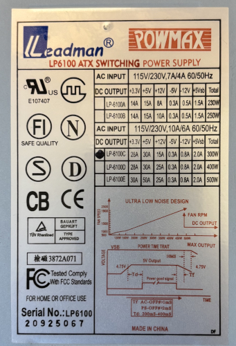 LEADMAN LP-6100C POWMAX ATX 300W Power Supply