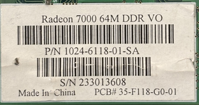 ATI Radeon 7000 VO 64MB DDR AGP Video Card