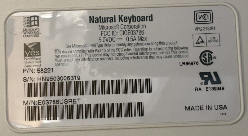 Microsoft Natural Ergonomic PS/2 Keyboard
