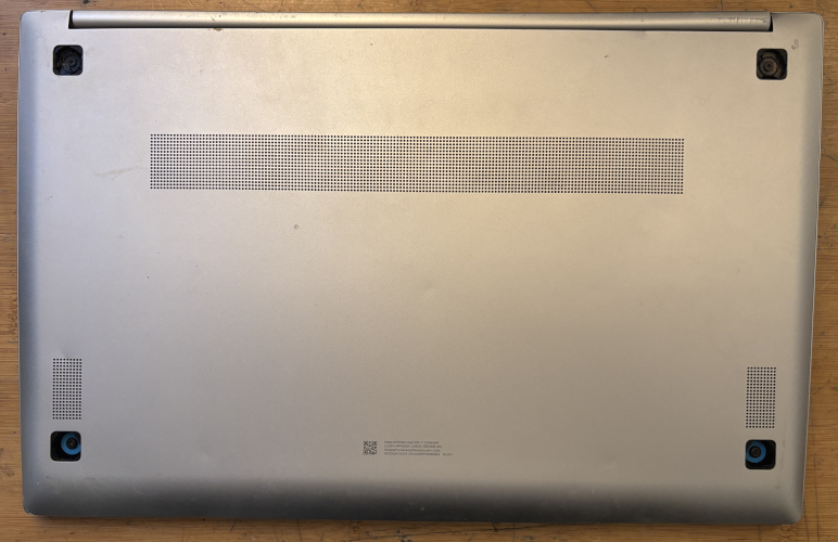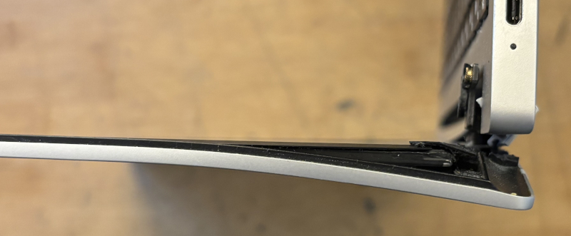The laptop is in good condition. The laptop does not powers on. The screen is bent on the left hand side facing the laptop and the hinge is broken. There is no hard drive installed. The battery is installed. Due to the laptop not working, we are unsure if the battery works. The power supply is not included. Please see below for the information of the laptop.