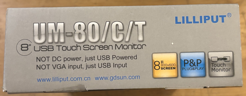 Lilliput UM-80/C/T 8" USB Touch Screen Monitor Brand New In Box